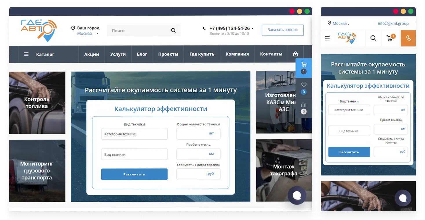 Разработали, выполнили программирование и внедрили "Калькулятор эффективности" приобретения систем мониторинга транспорта.