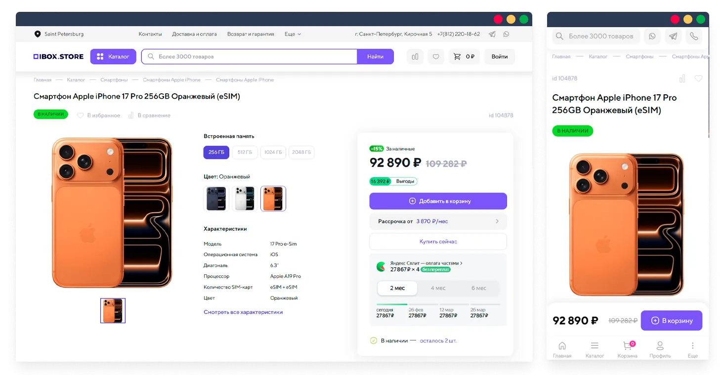 Цель: разработать функциональный и удобный интернет-магазин на платформе 1С-Битрикс, способный стабильно обрабатывать высокий трафик. Основной задачей было не просто «посадить» дизайн, а создать управляемый инструмент для бизнеса: автоматизировать процессы оформления заказов, настроить гибкие сценарии доставки и оплаты, а также обеспечить возможность самостоятельного управления контентом силами заказчика.