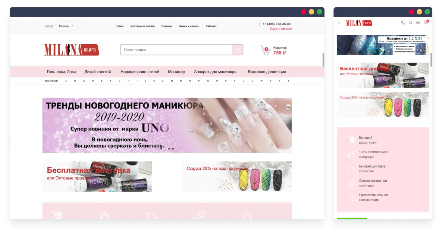 Взяли дизайн со старого сайта, это позволило сохранить узнаваемость бренда и интернет-магазина для потенциальных клиентов.